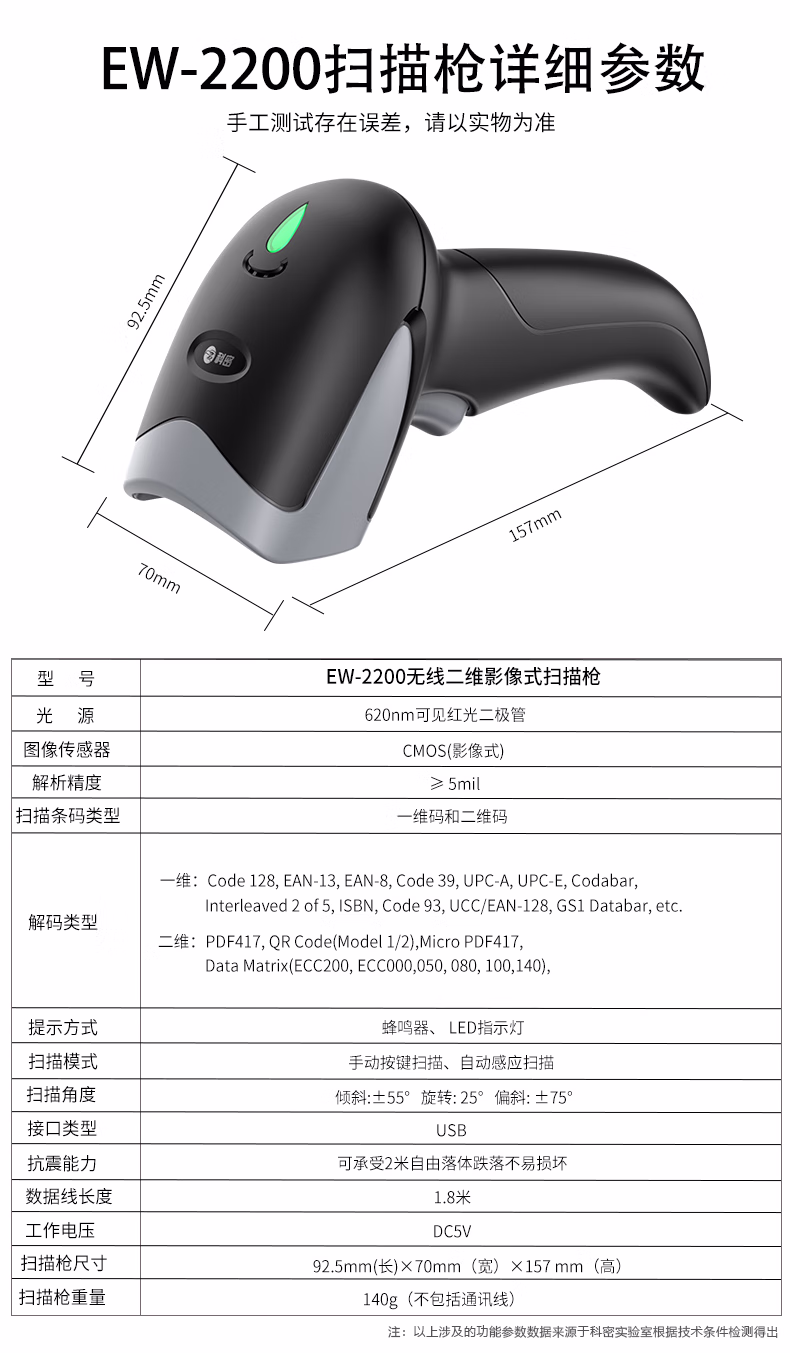 包装清单  :   科密(comet) 扫码枪 无线扫码扫描枪 仓库物流收银 快递商品入库条码扫描器 二维码药品追溯码EW-2200