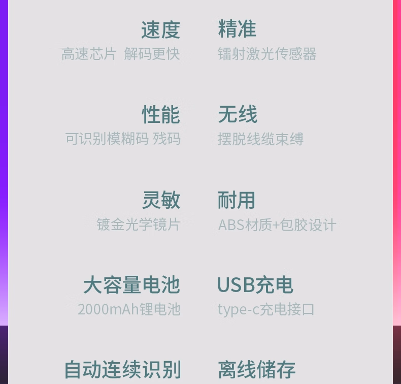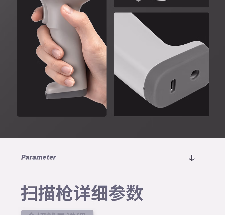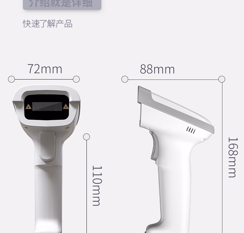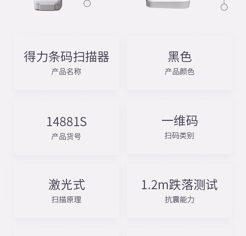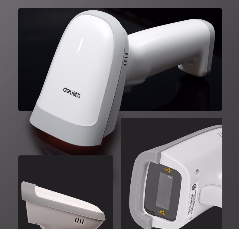 包装清单  :   得力扫码枪 无线扫码扫描枪器 药品追溯物流快递查询商品入库备件仓库条码扫描一维码14881S浅灰