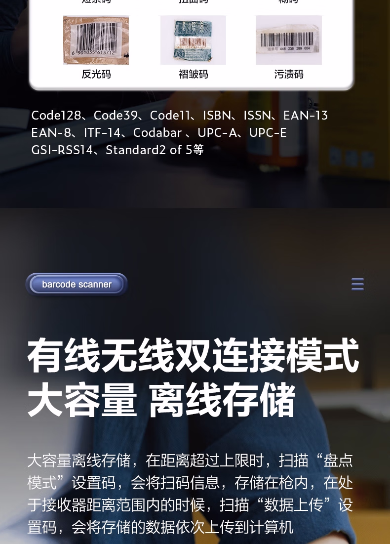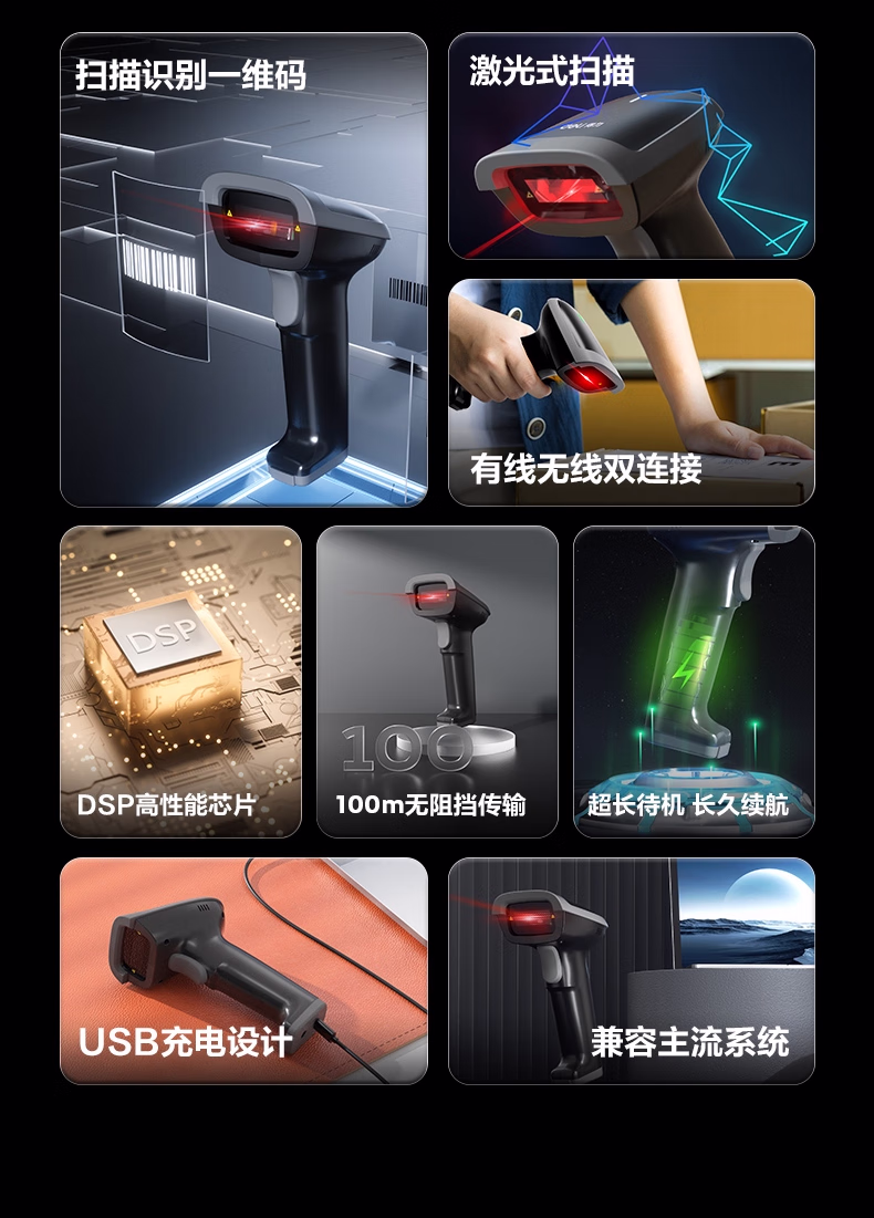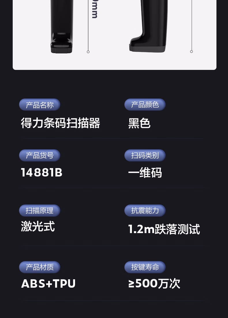 包装清单  :   得力扫码枪 无线扫描扫码枪 药品追溯物流查询快递商品入库备件仓库条码扫描器 一维码蓝牙连接14881B