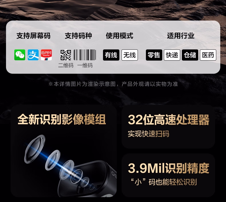 包装清单  :   得力扫码枪 扫描枪二维药品追溯医保支付快递物流查询收款扫码设备备件商品条码精度升级蓝牙款AA302WB