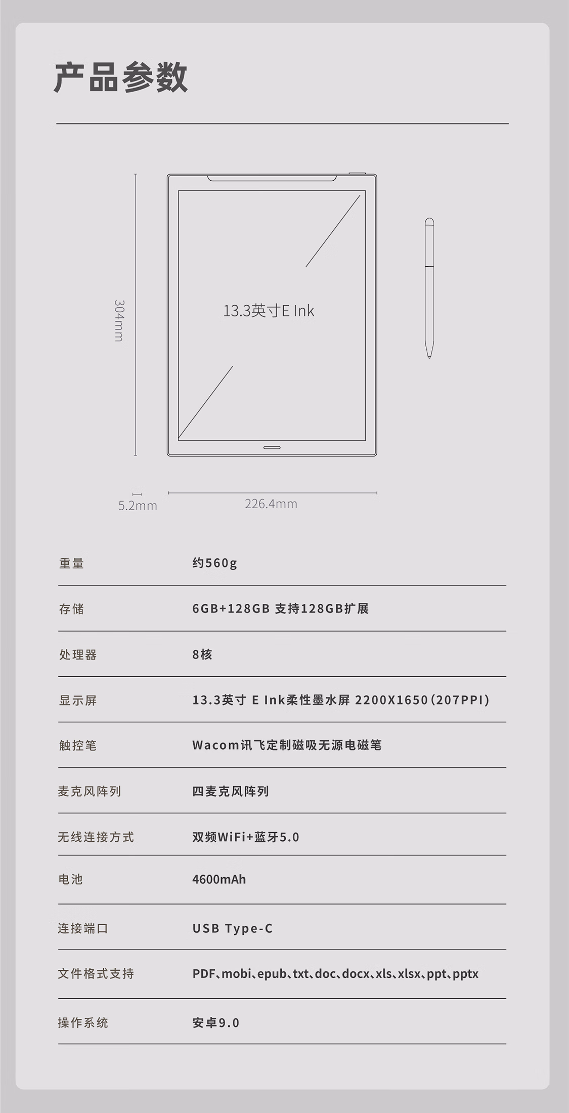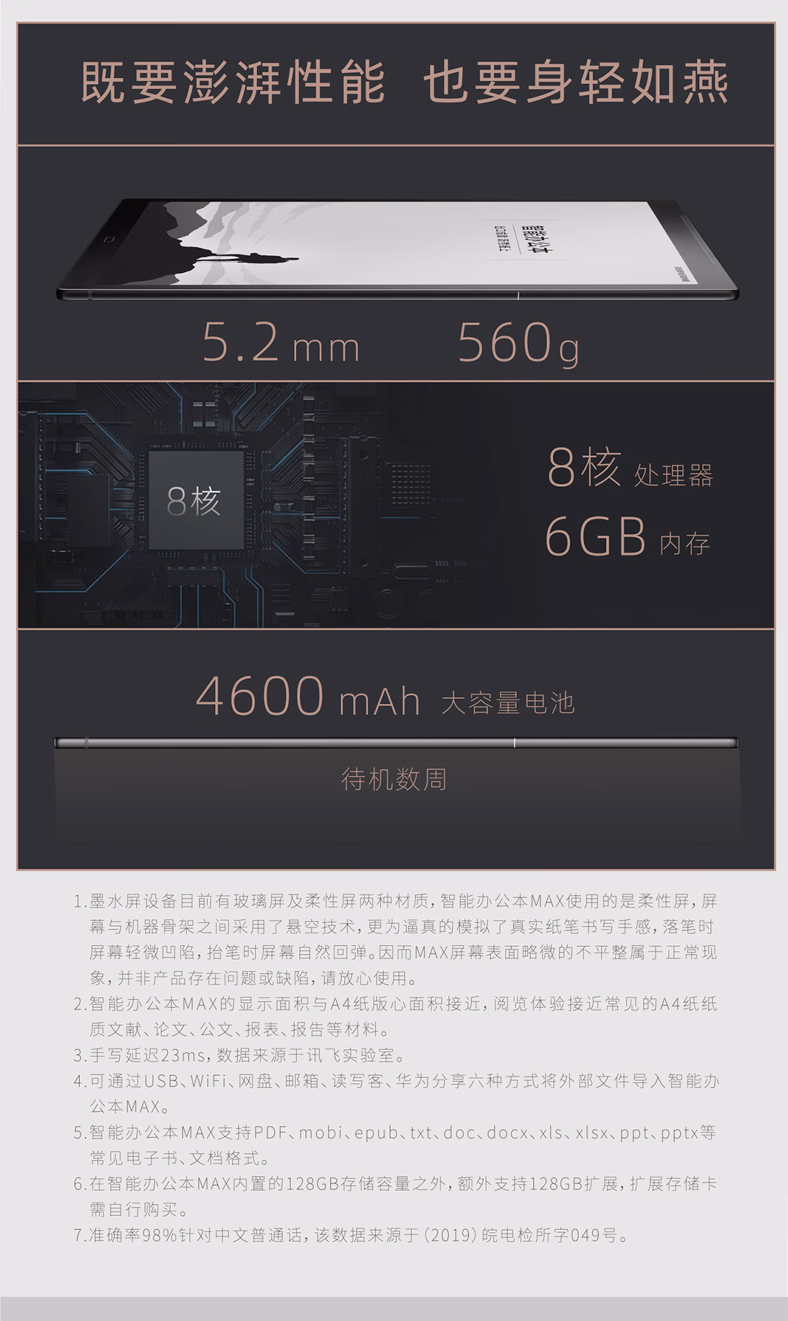 包装清单  :   科大讯飞智能办公本MAX 13.3英寸超大屏电子书阅读器 墨水屏平板电脑 显示器 电纸书 笔记本 语音转文字