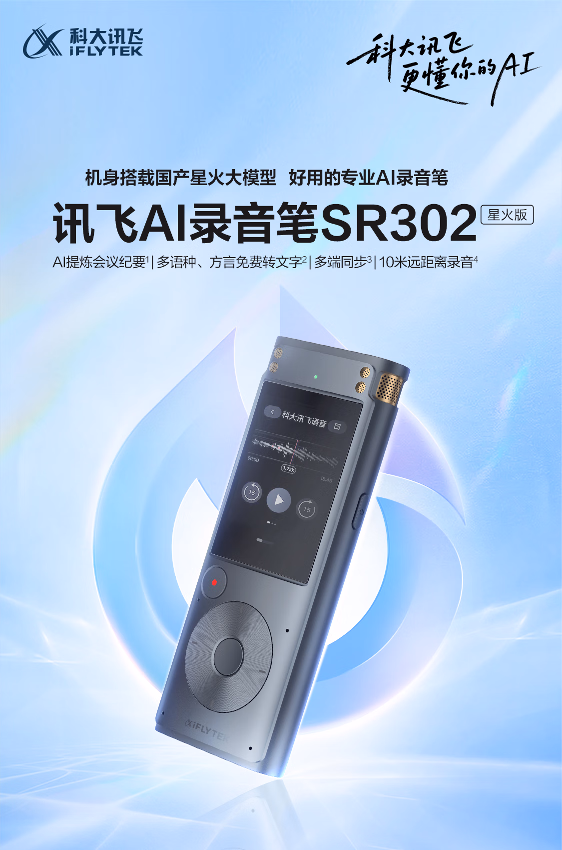 包装清单  :   科大讯飞AI录音笔SR302星火版 免费录音转文字 智能降噪录音器 随身便携专业录音设备录音机 同声传译