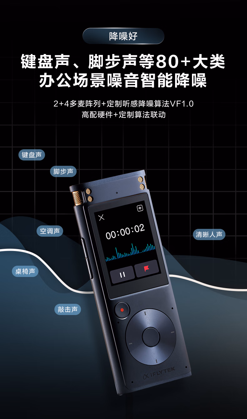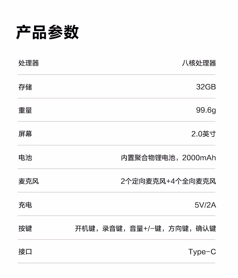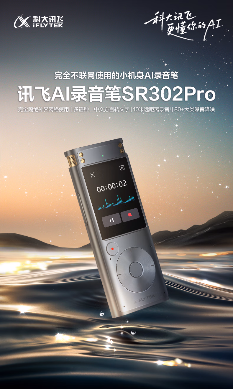 包装清单  :   科大讯飞AI录音笔SR302Pro 32G内存 专业录音 高清降噪 离线实时转写 360°拾音 免费转写 星空灰