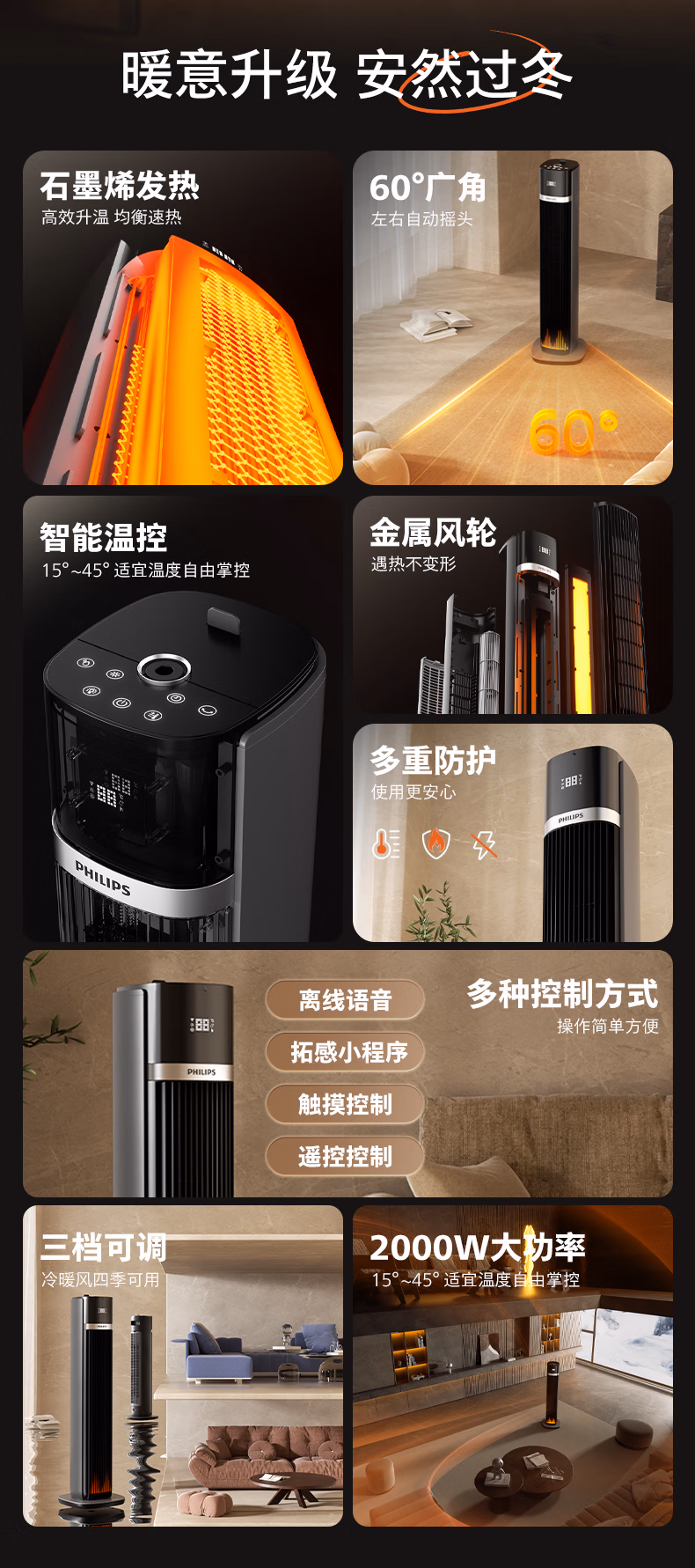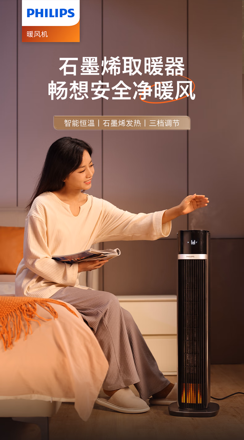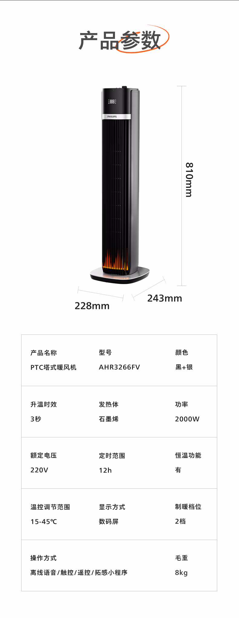 包装清单  :   飞利浦(PHILIPS)取暖器暖风机家用石墨烯电暖器浴室电暖气浴室客厅电热器节能省电大面积热风机电暖AHR3266FV