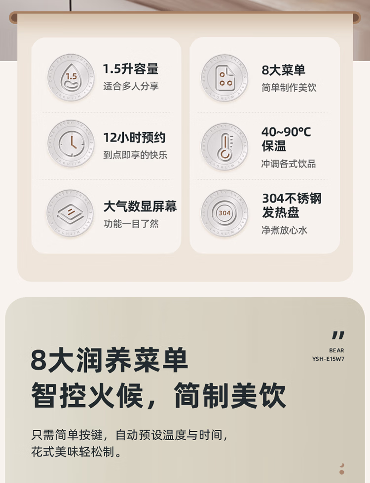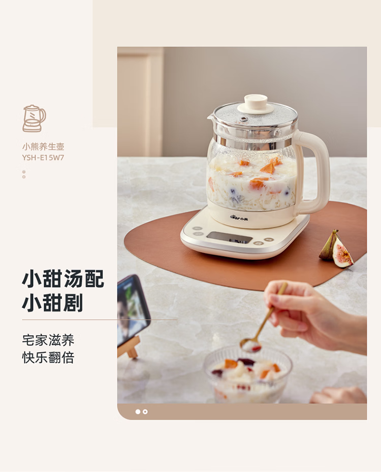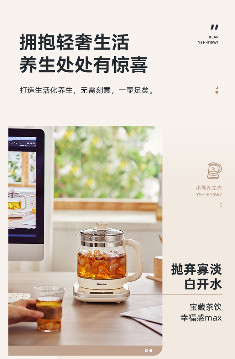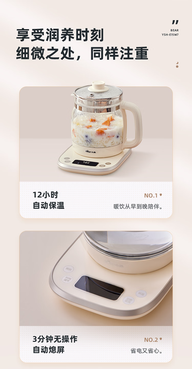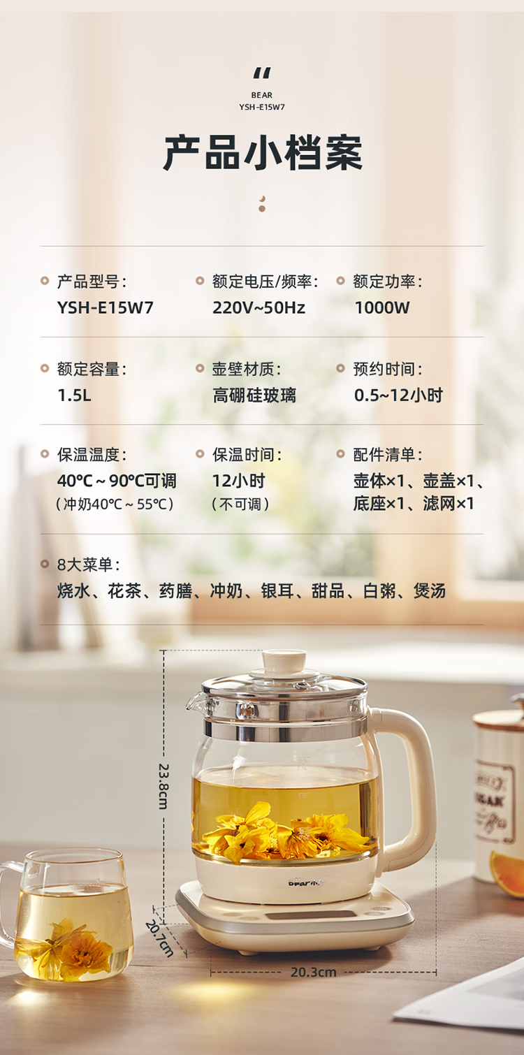 包装清单  :   小熊(Bear)养生壶 1.5L煮茶壶烧水壶 可拆卸茶篮 煮茶器电水壶 恒温电热水壶 保温花茶壶 YSH-E15W7