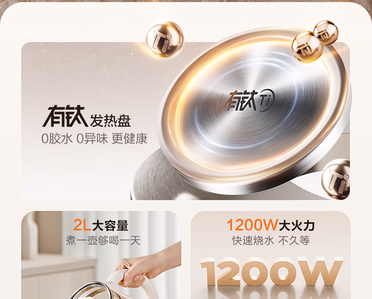 包装清单  :   苏泊尔(SUPOR)2L大容量 养生壶烧水壶花茶壶电水壶电热水壶煮茶壶煮茶器1200W大功率 0胶水有钛0涂层 SW-20YQ68B