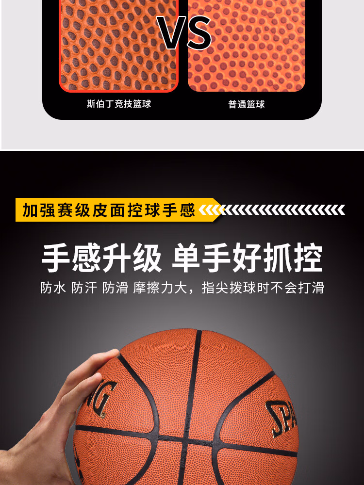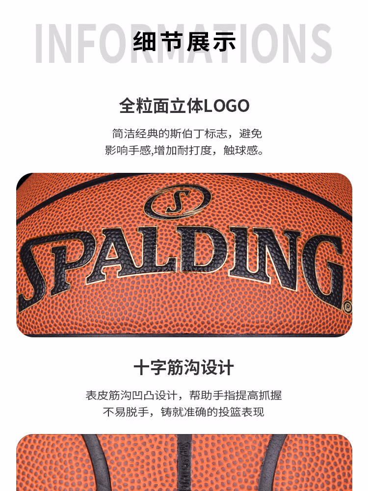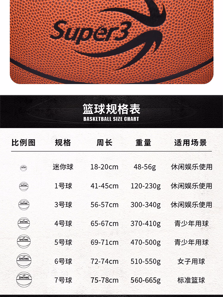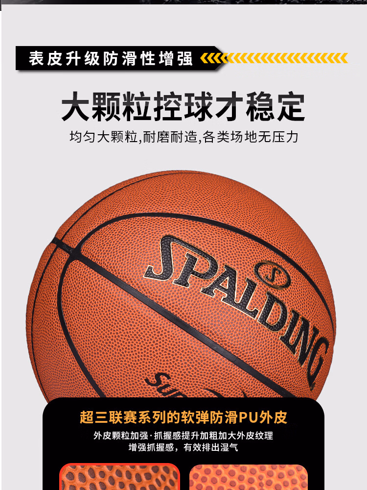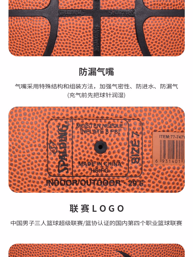 包装清单  :   斯伯丁(SPALDING)篮球超三联赛训练系列经典砖色系列7号PU材质成人篮球 77-747Y