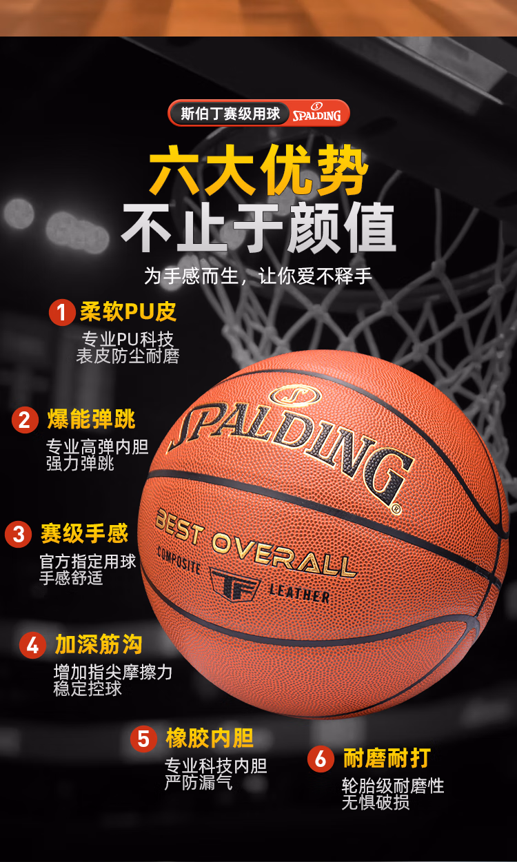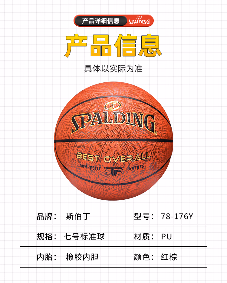 包装清单  :   斯伯丁(SPALDING)篮球TF系列7号PU比赛室内外兼用耐磨成人青少年78-176Y