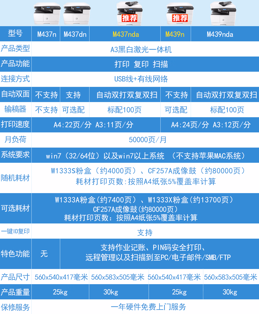 惠普(HP) M437nda 多功能一体机 437dna A3数码复合机 商用办公 自动双面 打印 复印 扫描 多功能一体机