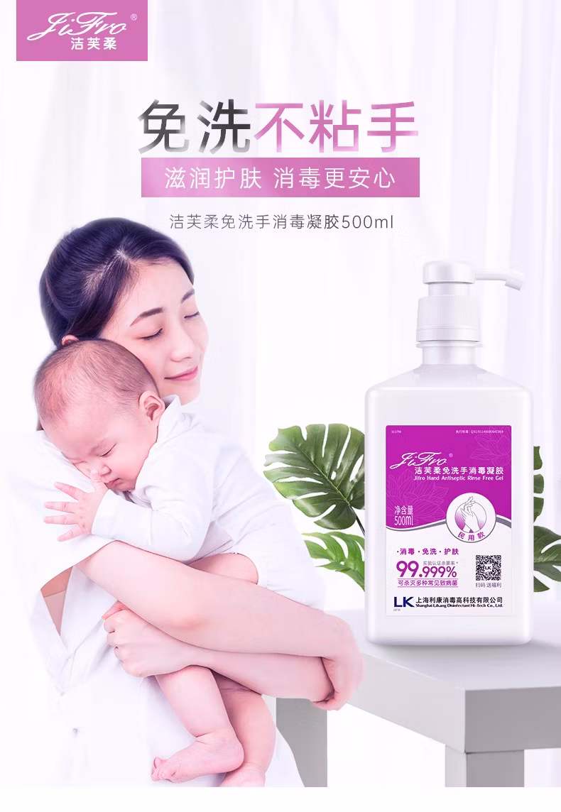 洁芙柔(JIFRO) 500ml 多用途清洁剂 免洗洗手液免洗手消毒液家用儿童学生酒精杀菌消毒凝胶旗舰店 500ml